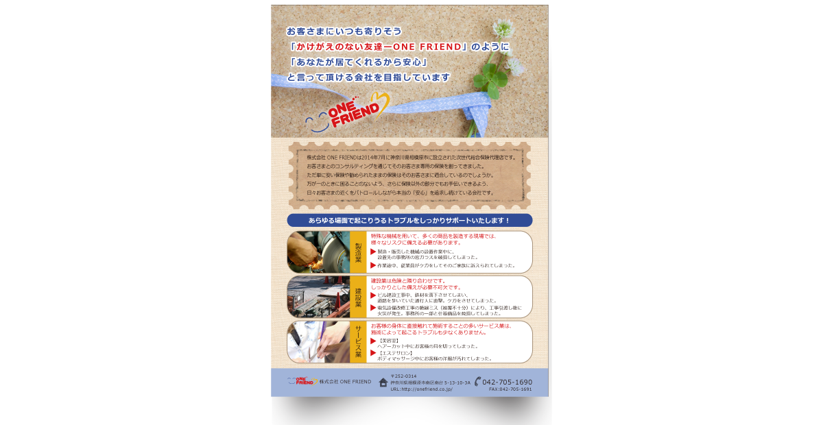 【チラシ】次世代総合保険代理店 ONE FRIEND 様