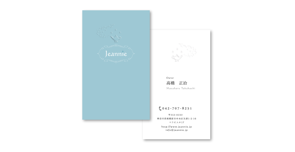 相模原市ある美容室Jeannie(ジーニー)です。オープンする前からいろいろと携わらせていただいたブルーを基調にした素敵な美容室です。オーナーさまのこだわりはとても素晴らしく、ここでしか出来ないこと、お客さまが喜んで下さることを常に真摯に考えていらっしゃいます。店内のブルーとホワイトにあわせた、シンプルだけど、こだわりはしっかりとお伝えするホームページが出来ました。